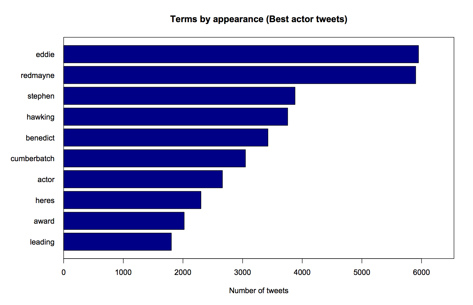 The graph above shows the number of tweets that include the surname of the Best Actor nominees.